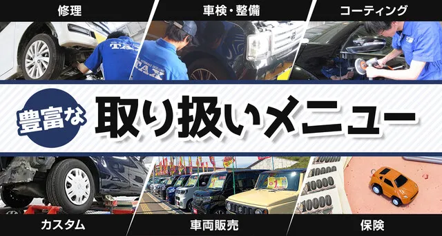 また、中古車販売もいたしておりますので、ご希望の車種などございましたらお気軽にご相談ください。