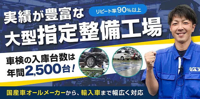 当社は累計入庫台数7万台以上、車検入庫台数は年間2,500台にものぼる実績豊富な大型指定整備工場です。国産車オールメーカーから、ベンツ・BMW・アウディなど輸入車の車検もOK。