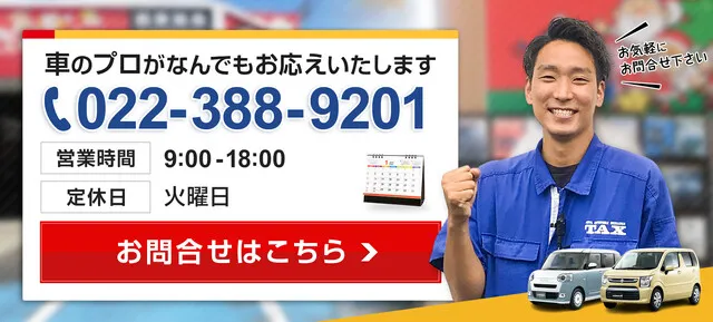 フラット7 宮城野では、【普通車・軽自動車・輸入車・バン・トラック等】幅広い車種を取り扱いしており、自社で直接販売が可能なため余計な中間マージン不要でその分査定が高くなるんです。買い取りのご相談は、電話・メール・FAXでも受け付けております。